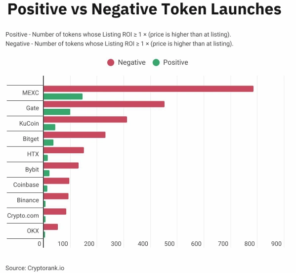 Egy új kutatás szerint a vezető központosított tőzsdék által 2025-ben kibocsátott tokenek 83%-a jelenleg a tőzsdei bevezetési ár alatt kereskedik.