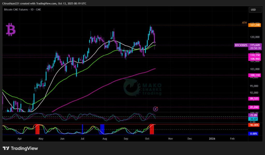 Ideális esetben a bikáknak vissza kell szerezniük a napi 21SMA/55EMA-t körülbelül 116k zónában, és ami a legfontosabb, nem szabad elveszíteniük a heti 21SMA-t 112,8k-nál mint támaszt, ami újra szikrát gyújt és legitim esélyt ad a Bitcoinnak, hogy kihívja az ATH-t 126,2k-n. Nagy a valószínűsége annak, hogy a következő jelentős mozgás előtt a piac konszolidálódik a 116k/200EMA 108k/PreviousWeekLow 104,9k (enyhén változhat a tőzsdétől függően) területen. 🤯 ⚰️ 😳