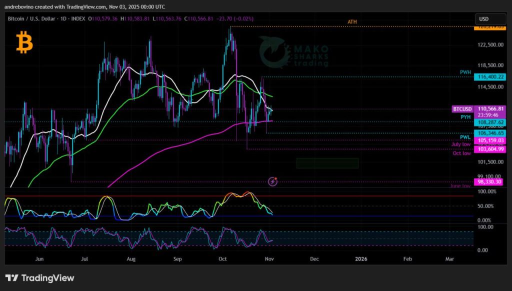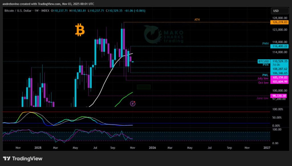 A bitcoin 110,5 ezren kezdi a hetet! Az „UPtober” pirosban zárult 21,83%-os árfolyam-tartománnyal, ami a kriptotörténelem egyik legérdekesebb hónapjává vált – új csúcstól a valaha látott legnagyobb likvidálási hullámig! A bitcoin azonban továbbra is „ping-pong” konszolidációban mozog, fenntartva a feszültséget a piacon.