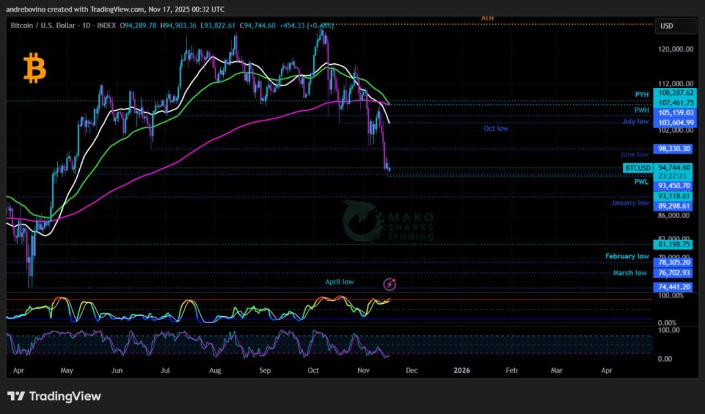 Bitcoin a hétet 94,2k-n kezdi! Az ebből a kritikus zónából való reakció döntő lesz a Bitcoin következő nagy irányának alakításában, és a kulcskérdés az, hogy a bikák képesek lesznek-e újra fellobbantani a remény lángját és visszahozni az optimizmust a kripto piacra, vagy a medvék megerősítik dominanciájukat és tovább nyomják lejjebb az árat?! Ez a pillanat vagy egy nagyobb felhalmozódási fázis kezdetét jelzi, amely az esetleges helyreállítás alapjait fekteti le, vagy a mélyebb korrekciós mozgás folytatását jelenti. 📉 🕯 😴